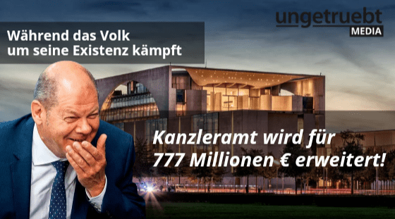 Wurden unter Angela Merkel noch 400 Mio. Euro Baukosten veranschlagt, schlägt jetzt der Erweiterungsbau des Kanzleramts 777 Millionen Euro zu Buche. Das Kanzleramt, dass auf 50 000 m² anwachsen soll, wird zur größte Regierungszentrale des Westens, was wohl kaum daran liegen mag, dass so mancher Zeitgenosse an Leibesfülle zunimmt und deshalb mehr Platz braucht. Was sind für Scholz schon 777 Millionen? Wie es um seine Bodenhaftung zum Geld der Steuerzahler aussieht, hat er ja bereits beim Cum-Ex-Skadal bewiesen.