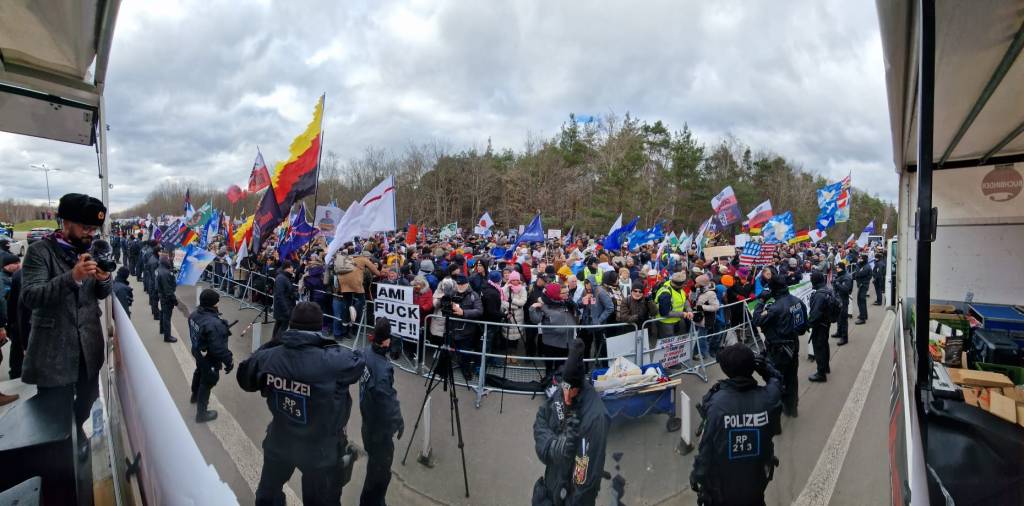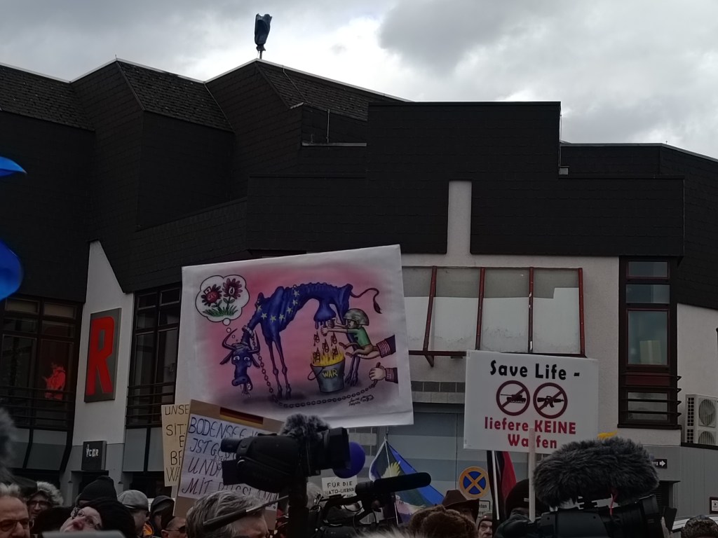 Nach München und Berlin gab es am vergangenen Sonntag auch eine große Friedensdemonstration in Ramstein. Trotz dass die Mainstreammedien die Veranstaltung im Vorfeld vollkommen totgeschwiegen haben, versammelten sich in Ramstein etwa 3000 bis 4000 Teilnehmer. Der SWR und andere Medien berichten von „nur“ 2500 Teilnehmern, aber das ist man ja gewohnt. Die Veranstaltung verlief auch nach Aussage der Polizei vollkommen friedlich. Wahrnehmbare Gegenproteste gab es nicht.