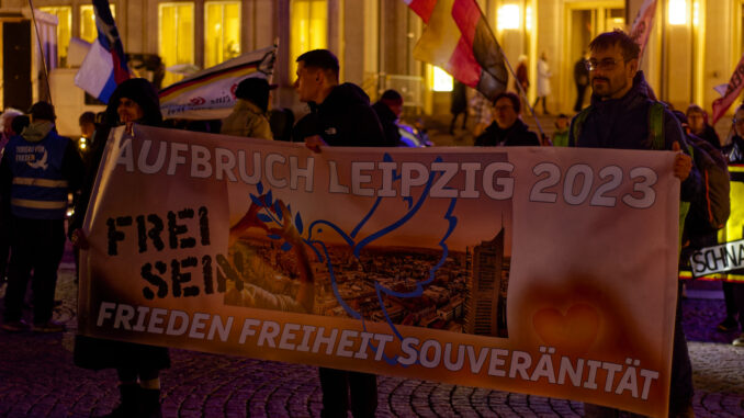 Am Sonnabend, 04.11.2023, fanden in Leipzig gleich mehrere Veranstaltungen statt. Auf dem Augustusplatz führte das Bündnis Aufbruch Leipzig eine Kundgebung mit anschließender Demonstration um den Leipziger Ring durch.