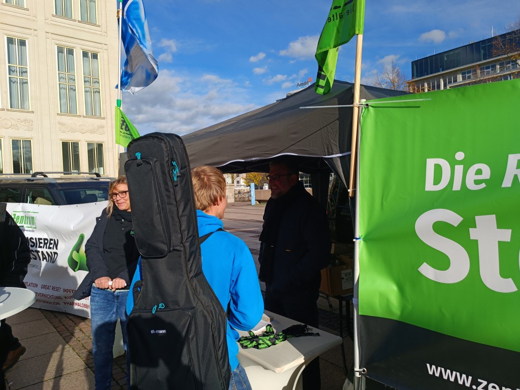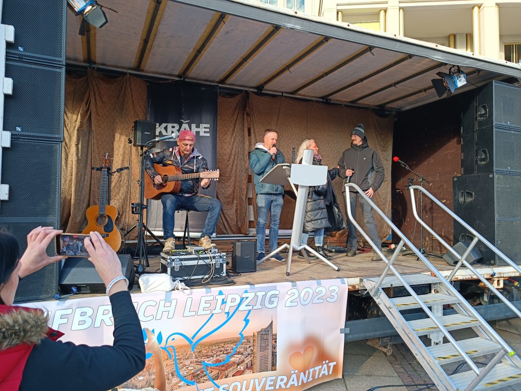 Die Veranstaltung umfasste gleich mehrere Themen. So beschäftigten sich die Redner mit den Themenschwerpunkten wie Aufarbeitung der Corona-Fehlpolitik, Frieden mit Russland und auch die aktuelle Eskalation im Nahen Osten wurden angesprochen. Als Redner waren in Leipzig unter anderem der bekannte Publizist Christoph Hörstel, Dirk Hoffmann vom Bündnis Reformation 2.0, Alexander Kurth von der Partei Aufbruch Frieden – Souveränität – Gerechtigkeit, der Brandenburger Landtagsabgeordnete Lars Hünich und weitere Redner zugegen. Positiv anzumerken ist, dass in Leipzig ein breites Querfrontbündnis auf der Bühne stand, was leider nicht selbstverständlich ist. Moderiert wurde die Veranstaltung durch die Friedensaktivisten Lars Mährholz und Wonja der vielen noch durch die Band Bandbreite bekannt sein dürfte. Auf dem Platz selbst war zudem eine Vielzahl von Organisationen vertreten, die sich mit Infoständen präsentierten. Erwähnen möchten wir hier die alternative Gewerkschaft Zentrum, die Freien Sachsen sowie die Galerie der Aufklärung.