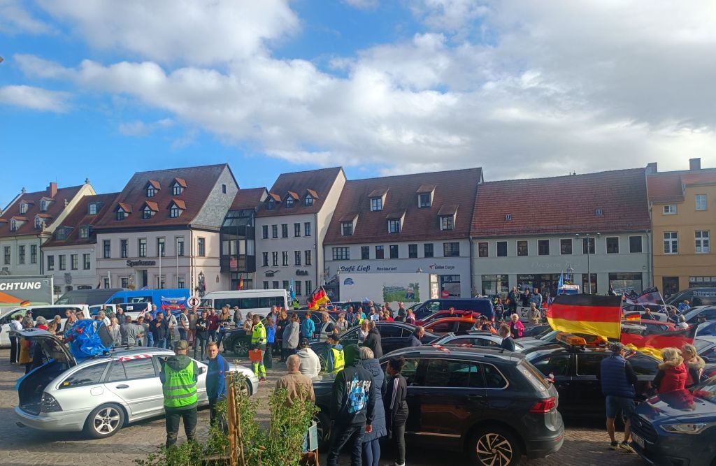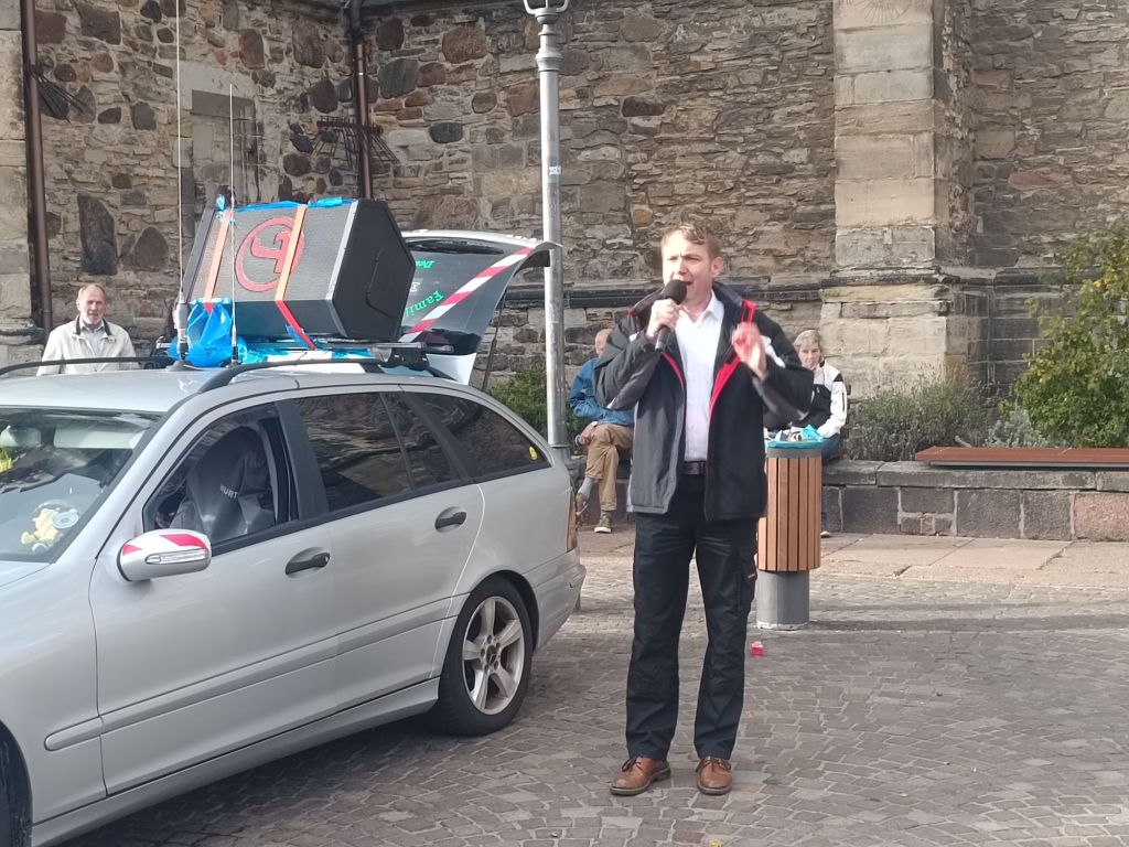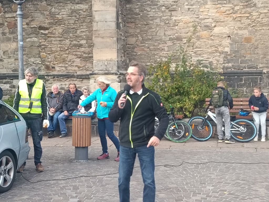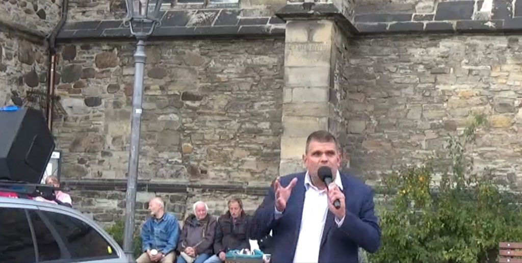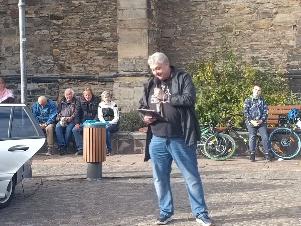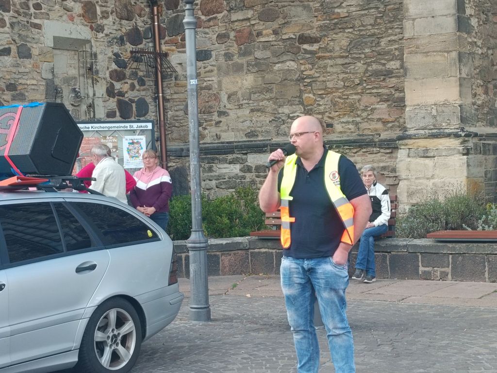 Die Zwischenkundgebung fand bei strahlendem Sonnenschein auf dem historischen Marktplatz in Köthen statt. Zu den Versammlungsteilnehmern sprachen regionale Unternehmer, Vertreter aus dem Orgateam, der ehemalige Landtagsabgeordnete André Poggenburg & Alexander Kurth vom Aufbruch Frieden Souveränität und Gerechtigkeit.
