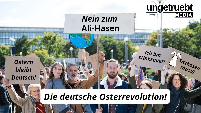 Worum geht es ? Um Krieg, Frieden oder gar Freiheit? Nein, es geht um den Osterhasen, schokloladig und eingehüllt in Papier, mit Namen versehen, was so manchen Bürger zum entzürnen bringt. Ob es der Sitzhase, der Stehhase, der Regenbogenhase, von KI generiertes Bild vom Alihasen oder ein bearbeitetes Bild vom Transhasen ist, das Volk tobt. Man will Supermärkte boykottieren, Anzeigen erstatten und vorallem Widerstand.