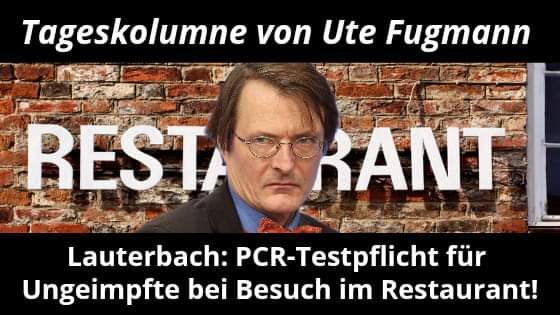 Die empathielose FDJ-Schranze Merkel macht munter weiter. „Wir müssen dafür werben, dass geimpft wird“, sagte der personifizierte Untergang Deutschlands nach dem virtuellen Treffen mit ihren Hofschranzen und -innen. Hmm. Ab dem 11. Oktober werden also die Bürgertests nicht mehr durch Steuereinnahmen beglichen sondern direkt vom Bürger bezahlt. Diese brauchen die Bürger für die Innengastronomie und bei Beherbergungen. Okay. Liebe Gastronomen stellt wieder eure leeren Stühle raus.