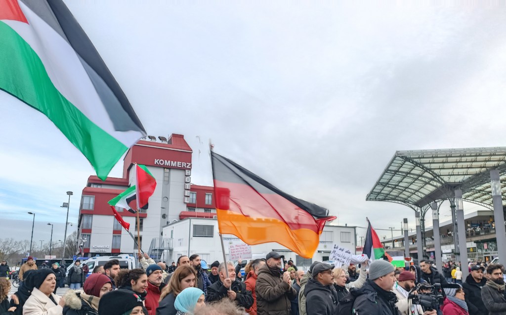 Neben der fehlenden Souveränität Palästinas wurde auch die fehlende Souveränität Deutschlands thematisiert. Mit den Worten Freiheit für Palästina, Freiheit für Deutschland wurde die Veranstaltung beendet.